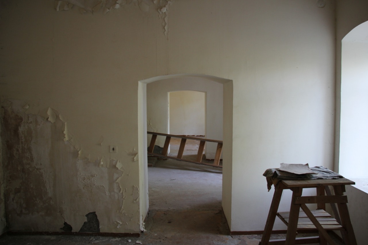 дом, конечно, нуждается в срочном уходе, если мы хотим его сохранить. прямо на входе растет дерево, которое разрушает кладку:
