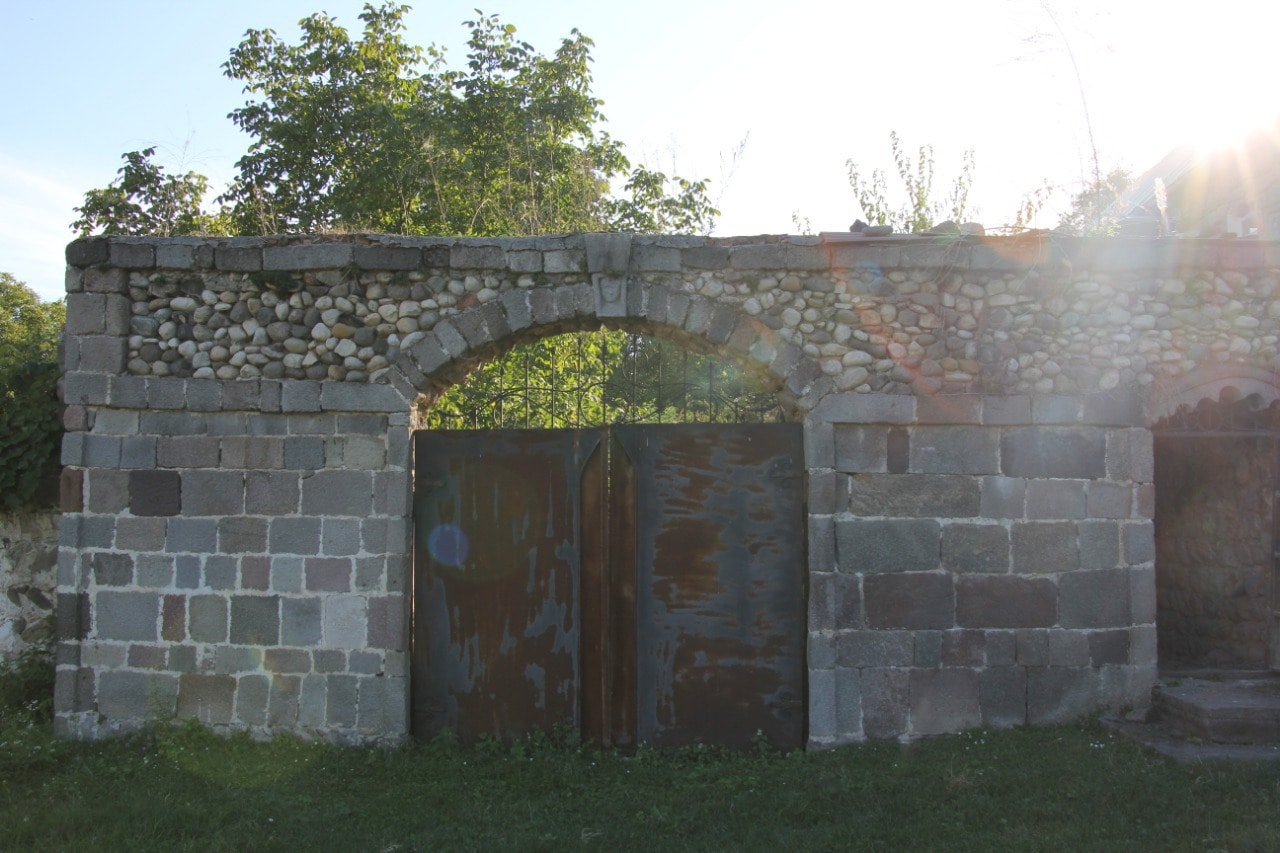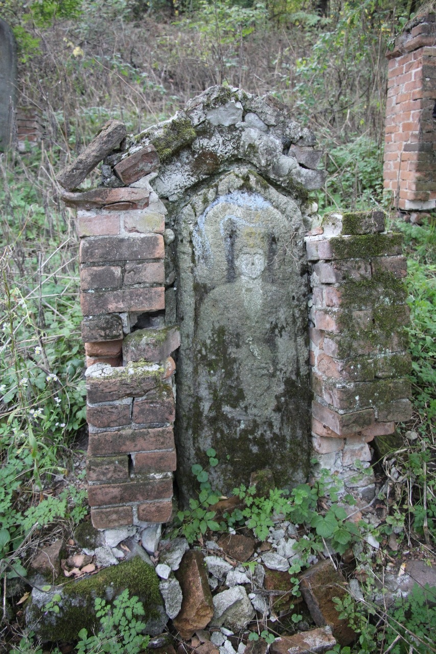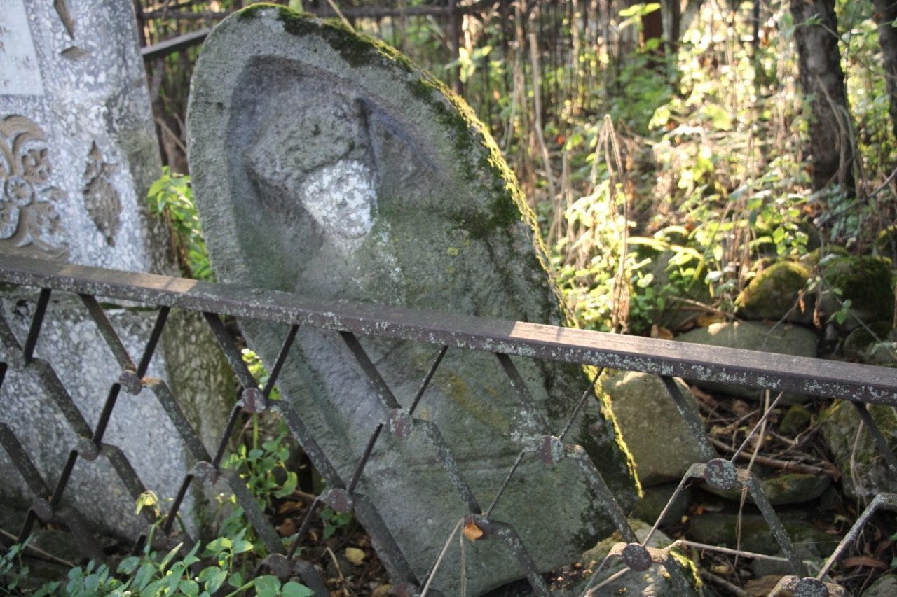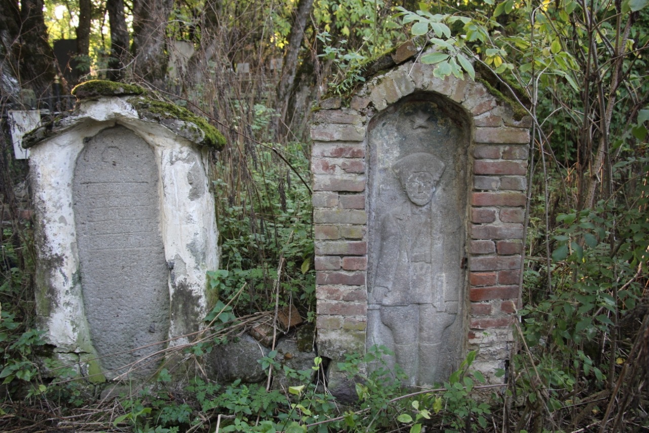 рядом с домом находится кладбище, где и стоят многие надгробные камни, сделанные Едзиевым. все они в сильном запущении: