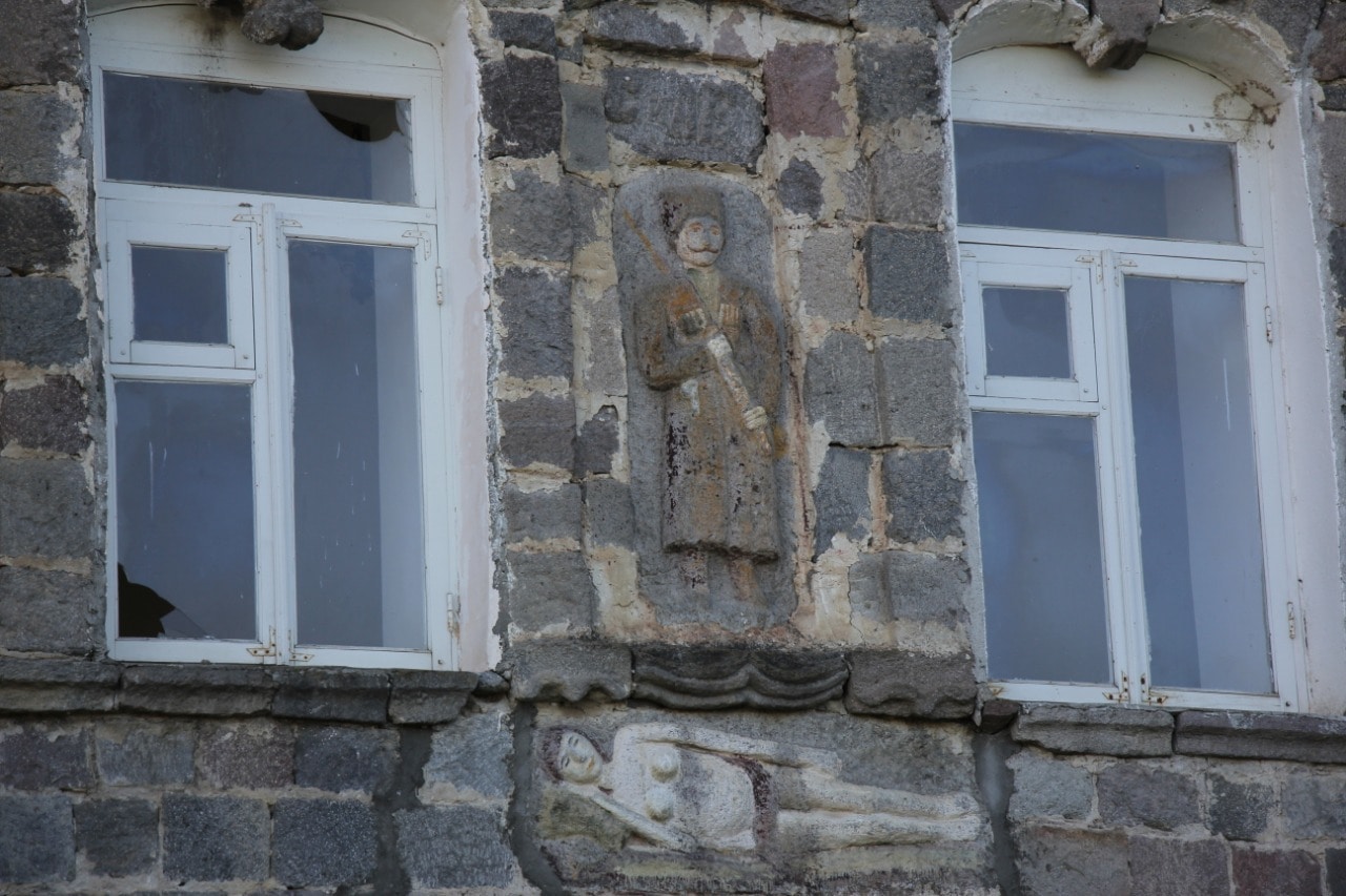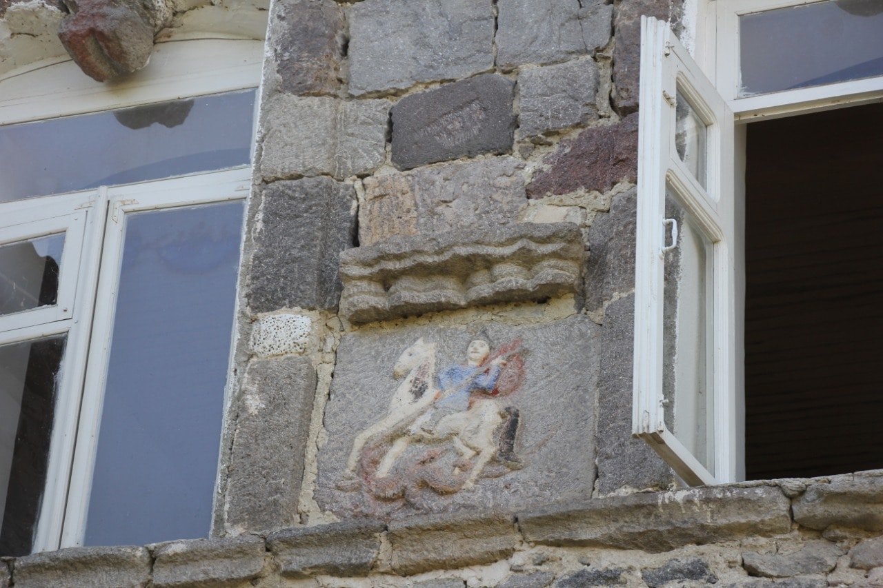 но все равно дом, построенный самим Едзиевым, дает представление о художнике. даже кладка выглядит необычно красиво. обратите внимание на небольшой потрет на арке. таких деталей там полно.