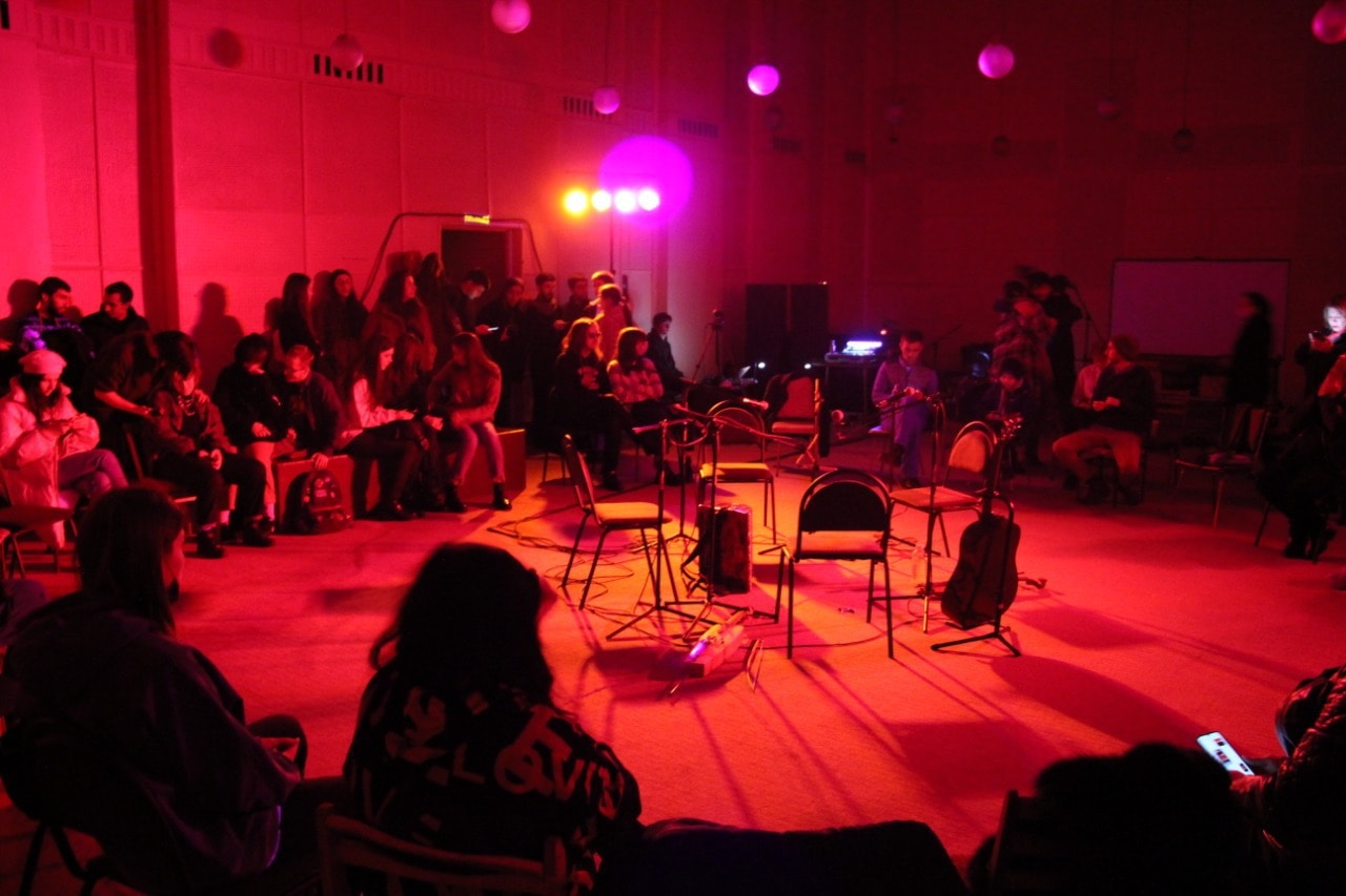 выступало всего два коллектива, но такие разные, что как гамма впечатлений оказалась очень широкой. это ансамбль JRPJEJ с новой программой, ранее не исполнявшейся. они сами называют это пост-традиционной черкесской музыкой. то есть, нациальная сосатвляющая в музыке здесь очень сильно слышна, но и собственный модерновый подход музыкантов тоже. это такие растяжные пения, погружающие в медитацию.