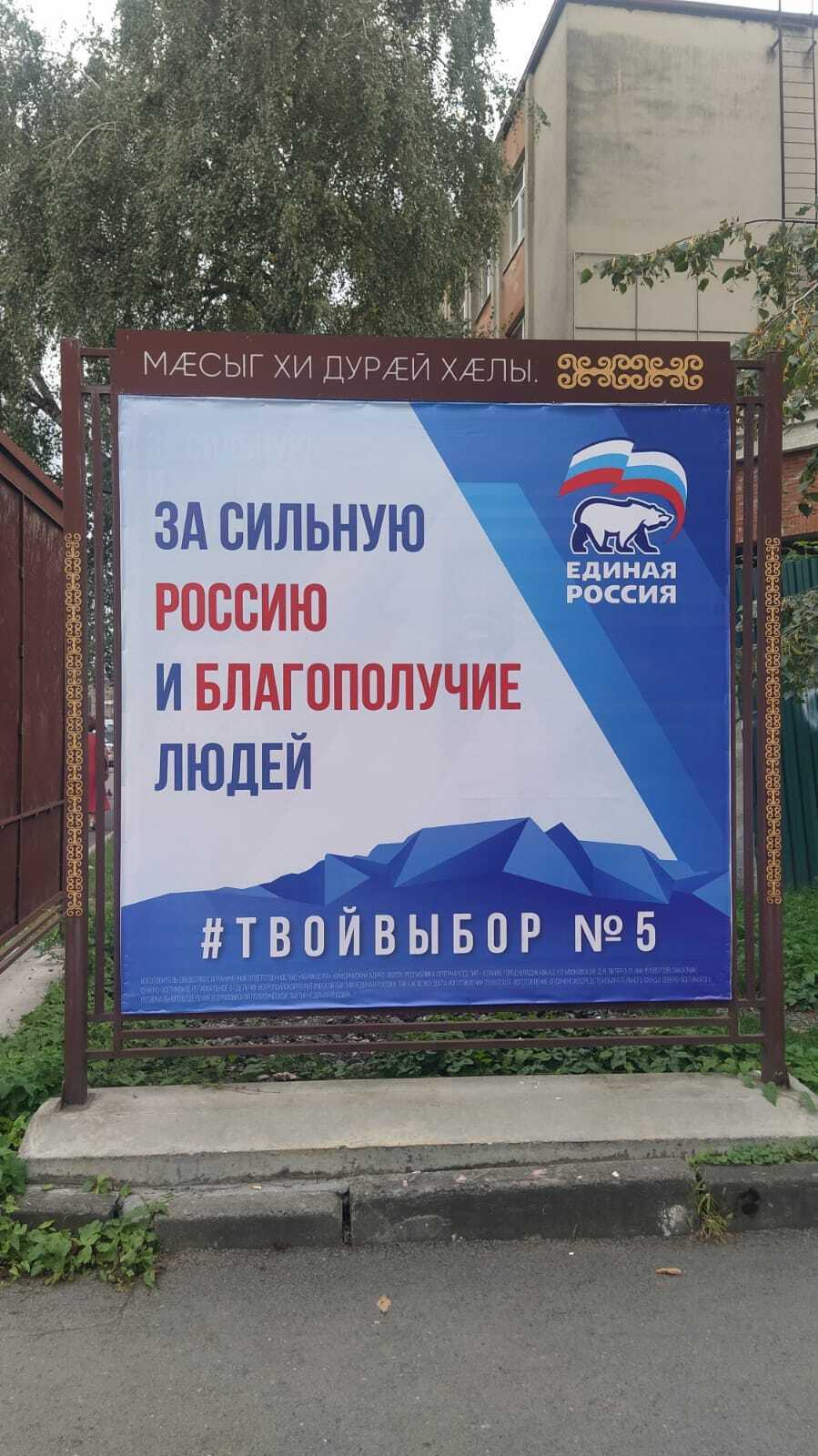 увидел две фотки в фейсбуке Марата Цагараева, историка. это довольно смешно, на мой взгляд. предвыборные билборды ЕдРа размещены на специальных стендах, которые сверху украшены осетинскими пословицами. те, кто вешал билборды даже не подумал о том, чтобы понять содержание этих пословиц:
