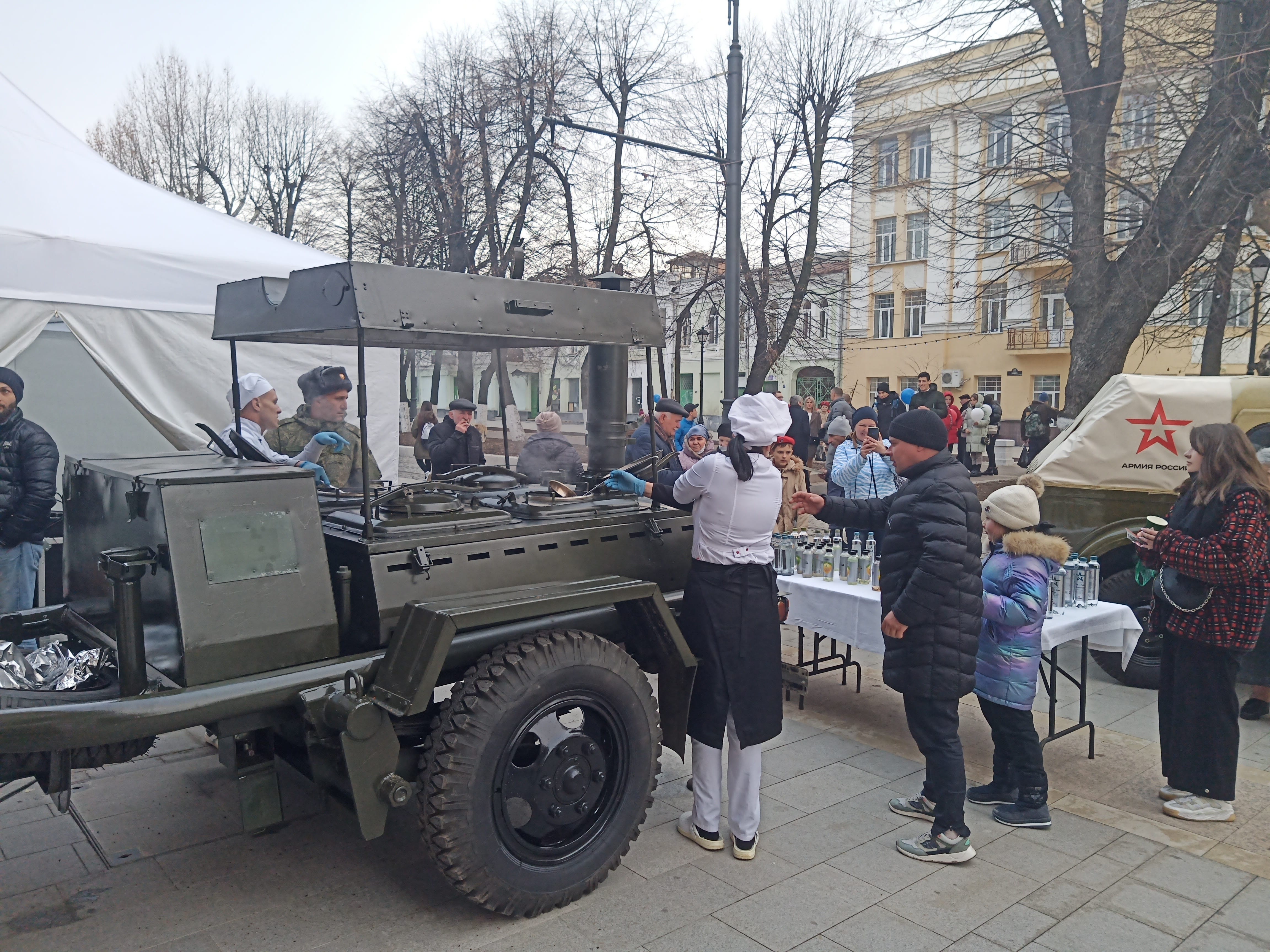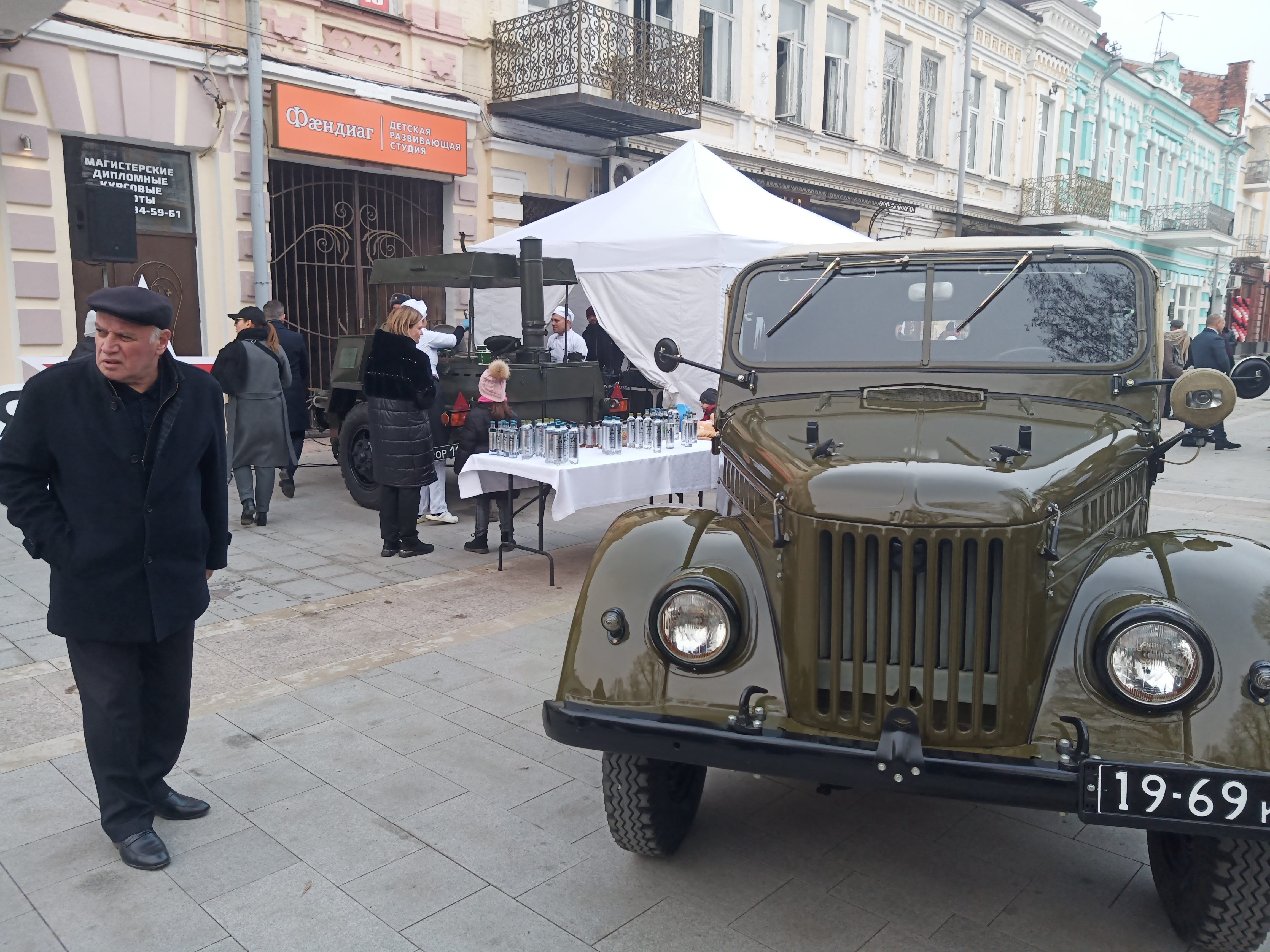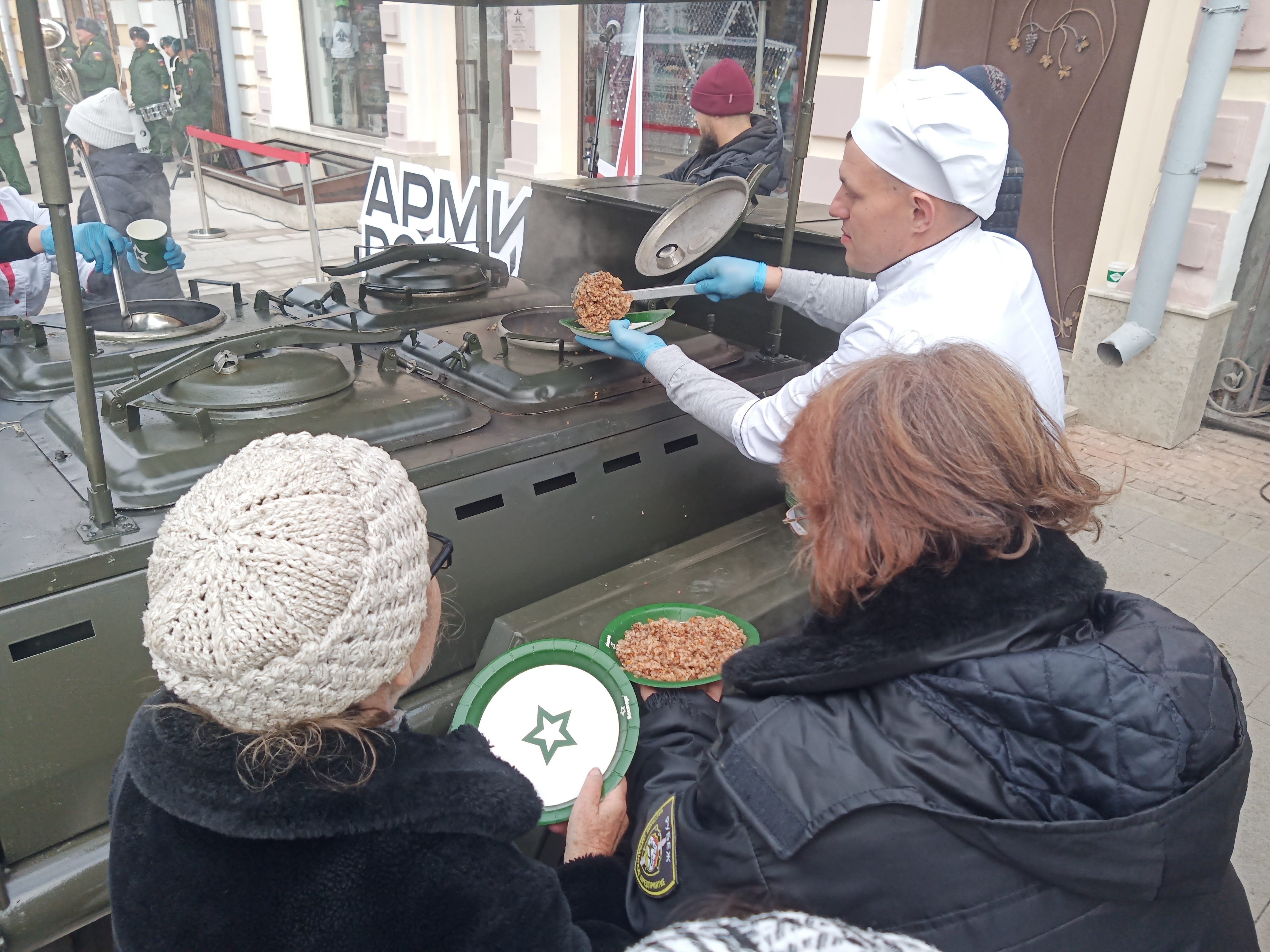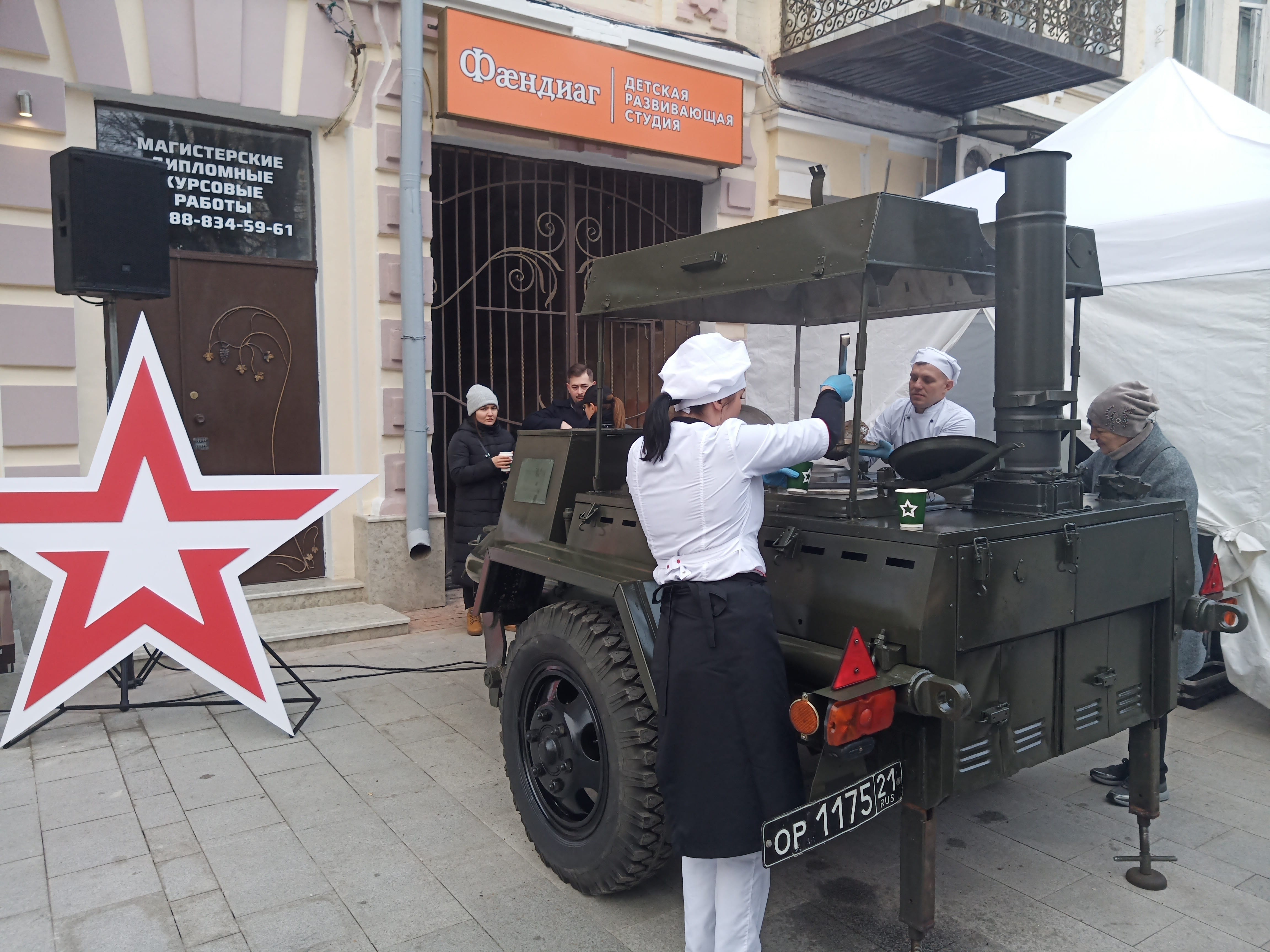 сегодня случайно наткнулся вот на такое весьма пафосное открытие магазина бренда "Армия России" на Проспекте Мира во Владикавказе. с ретро-машиной, с полевой кухней, военным оркестром и выступлениями чиновников и руководства бренда. в частности, директор Военторга Павлов Владимир заверил, что магазины "Армии России" будут открываться и в других странах, ведь, добавил он, как сказал Владимир Путин, "границы России не заканчиваются нигде". ниже несколько фото и одно видео.