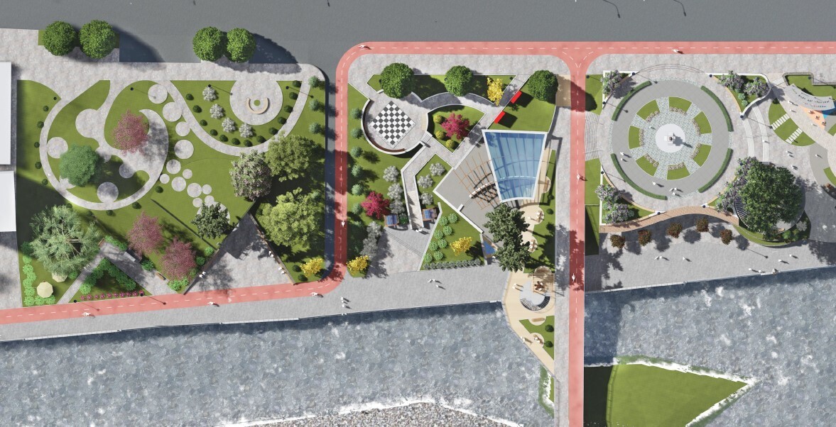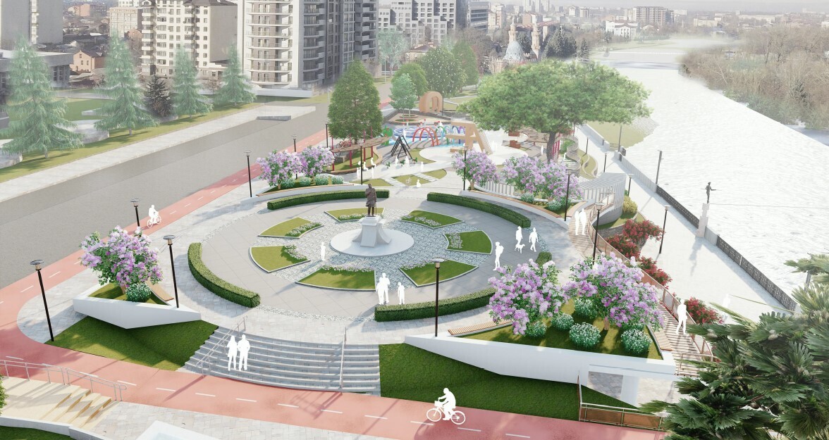 Авторы развивают идеи генплана Владикавказа по созданию единой системы озеленения, основой которой должны стать набережные по обоим берегам реки Терек, и они же являются стержнем планировочной структуры города.
