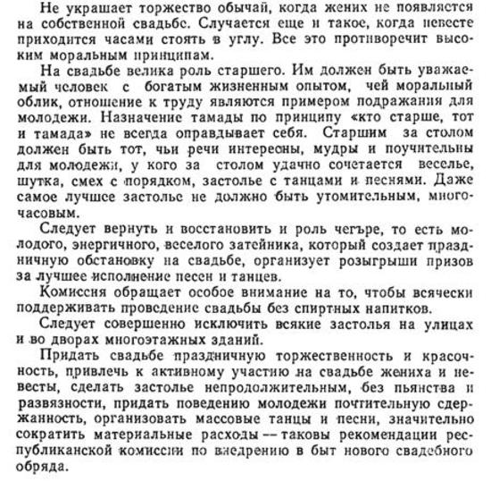В республике была создана  комиссия по новым обрядам, которая  разработала рекомендации по проведению гражданских и семейных обрядов (свадебных, похоронных, обряды проводов юношей в армию, обряды чествования выпускников школ, чествование трудовых династий и т.д.). В этом посте предлагаю Вам рекомендации комиссии о том, как следует проводить свадебный обряд.