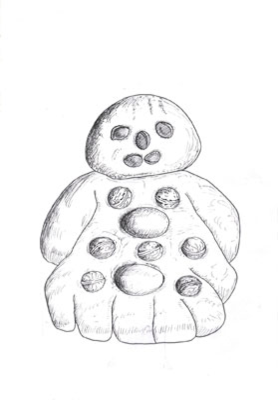 Все части тела куклы пекли отдельно, а потом их соединяли при помощи палочек. Глаза куклы делались из серебряных монет, а зубы – из фасоли. Груди украшались яйцами.