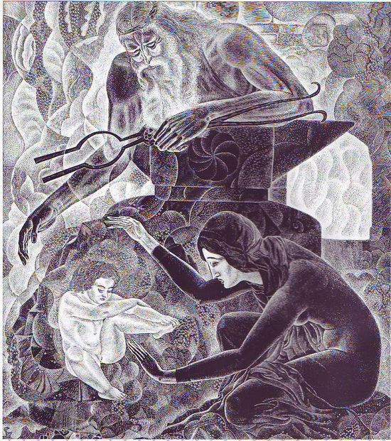 Нарта Сосрыкъэ закаляли чуть ли не с момента рождения...Картина Феликса Петуваша.
