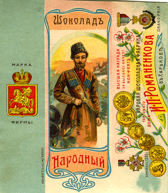 Кавказец или, возможно. казак появляется и серии шоколада «Народный» фабрики Романенкова в Харькове.