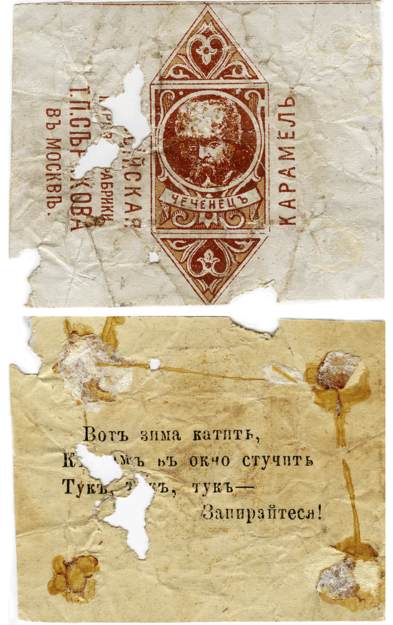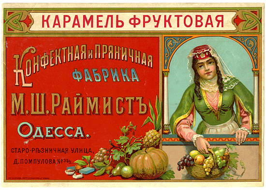 Такое же стилизованное изображение, явно отсылающее к Закавказью, — на обложке карамели, сделанной на фабрике в Одессе.