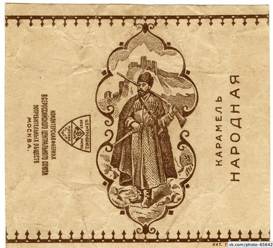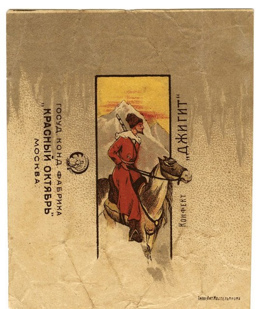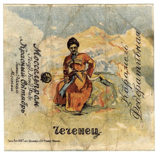 В 1920-30 е гг. фабрика «Красный Октябрь» (к тому времени это - национализированная фабрика Эйнем, сначала получившая название «Государственная кондитерская фабрика №1, бывшая Эйнемъ», а с 1922 года - «Красный Октябрь») выпускает очень интересные серии— карамель «Федеративная» и карамель «Народная». В галерее этнографических образов Федеративной карамели среди карамели «Киргиз», «Сарт», «Башкиры»,«Лопарь» «Калмыки» есть и карамель «Чеченец». А в серии «Народная карамель» - карамель  с изображением горца в черкеске на обертке.