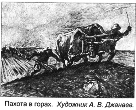 О трудолюбии горцев с удивлением и восхищением писал А.А.Бестужев-Марлинский в своём «Аммалатбеке»: «Посмотрите на этого старика… он в опасности жизни ищет стопы земли на горном утёсе, чтобы посеять на нём горсть пшеницы. С кровавым потом он жнёт и часто кровью своей платит за охрану стада от людей и зверей».