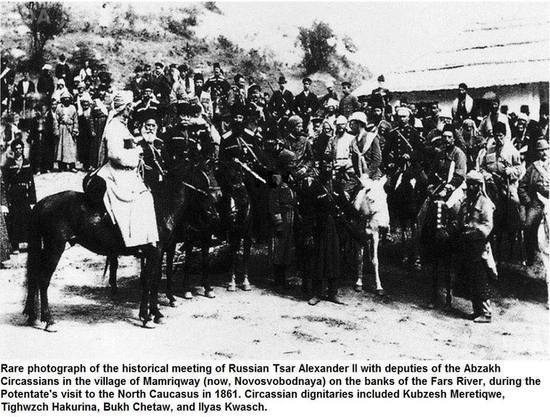 11 сентября 1861 года на Тамани состоялась первая встреча «мирных и немирных» черкесов (более 500 человек) с императором. Черкесы просили царя не выселять их с Кавказа. Царь сначала пообещал им сделать все возможное.