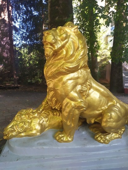 О первом, например, напомнит триумфальная арка с двумя золотыми львами, вцепившимися  в поверженных кабанов, установленная  в честь  50-летия города-курорта.