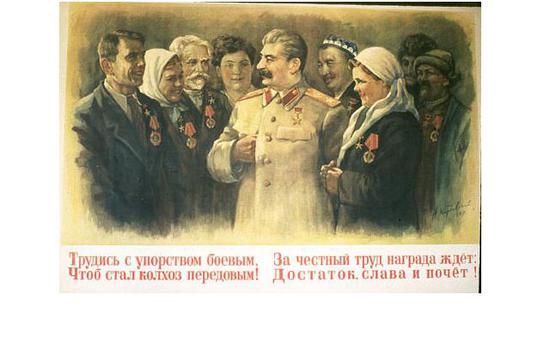 В 1930-е развиваются колхозы, такая форма хозяйствования на селе, при которой средства производства (сельскохозяйственные земли, пашни, оборудование, скот в том числе и КРС, семена и так далее) находились в общем управлении участников колхоза, а результаты совместного труда распределяются общим решением участников.