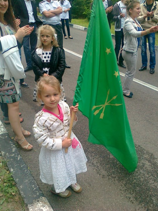 В Майкопе, Нальчике и Черкесске  25 апреля  проходят  шествия молодежи с национальным флагом, в том числе с участием всадников и автомобилистов.