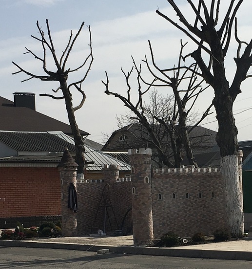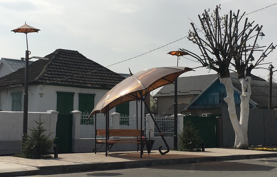 Ну да ладно я отошел от того о чем хотел написать, для людей, читающих мою писанину не секрет, что я много езжу по разным городам и странам. Так вот во всех этих поездках я всегда обращаю внимание на архитектуру, на дороги и другие коммуникации необходимые для удобств населения, на то, как учтены интересы инвалидов, на разные фишки радующие глаз туристов. Во время посещения Нальчика я увидел красивую и интересную остановку, что бы ее лучше рассмотреть и сфотографировать я специально объехав квартал, вернулся к ней. Приглядевшись получше, мне понравилась не только остановка, которая привлекла мое внимание, но и фонарные столбы, елочки и дерево увешанное маленькими зонтиками. Обратите особое внимание на старенькие домики, перед которыми соорудили эту красоту, очевидно же, что в них живут не богатые люди. И еще в метрах ста от этой остановки строят, какой-то объект в виде маленькой крепости, он также окружен деревьями и интересными газончиками. Пишу я это для того, что бы мы все не ждали пока забуревшие чиновники вспомнят о нас и о своих обязанностях, а для того  что бы заставляли их работать, да и сами не дремали и как минимум постарались навести стильный марафет перед своими домами и коммерческими объектами. Это тоже своеобразное проявление любви и уважения к своим соседям, городу, стране.