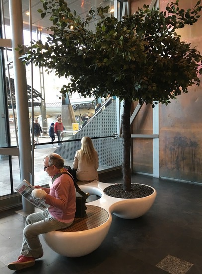 Уже перед самым отъездом в аэропорт, на вокзале г. Осло я увидел такую интересную скамейку