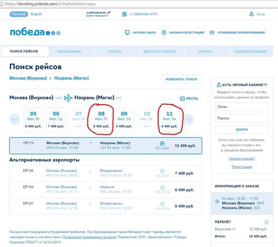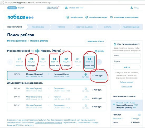 Цены на билеты взлетели почти в четыре раза, причем взлетели они у обеих авиакомпаний. В преддверие праздника, пассажирам приходиться переплачивать стоимость билета в несколько раз, но после его окончания цены сразу стабилизируются и билеты можно приобрести по обычной цене.