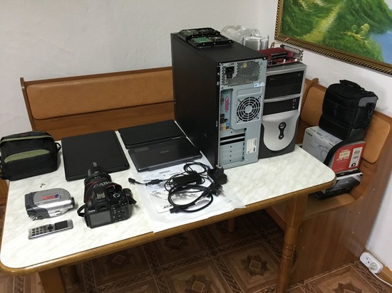В результате той вакханалии, была изъята вся моя техника и даже техника моих детей, а так же документация организации и часть библиотеки. На сегодняшний день нам вернули всю технику, и бОльшую часть документов, за исключением некоторых финансовых, переписки, визиток, бейджиков и литературы наших коллег. Вся возвращенная техника, конечно непригодна к использованию, часть ее «почему-то» не работала, а на другой работать не захотели мы и как оказалось правильно сделали. Всю возвращенную технику я раздал, предварительно «почистив». Фото и видео технику я подарил на запчасти, так как они были сломаны и ее ремонт обходился слишком дорого. Отремонтированные компьютеры, комплектующие к ним, ноутбуки, нетбук, планшеты и другую технику, я подарил гражданским активистам и детям. Конечно же, всем новым обладателям той техники я рассказал ее историю.