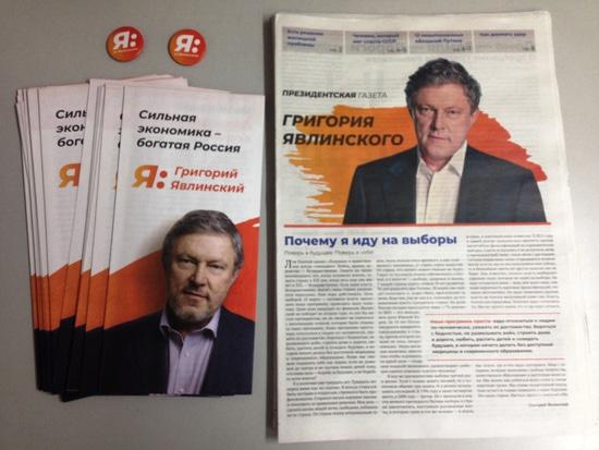 Несколько дней назад ситуация с агитацией кандидатов в президенты изменилась и практически во всех городах и районах появились газеты и буклеты призывающие голосовать за Григория Явлинского. Агитаторы штаба Григория Явлинского распространяют по всей республике тысячи газет и буклетов с описанием его президентской программы.