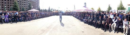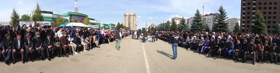 Уже седьмые сутки продолжается народный сход в Магасе. Как и в предыдущие дни, ситуация остается стабильной и спокойной. Ночью в Магасе оставалось около тысячи человек, часть из которых провели еще одну ночь под открытым небом. И с утра народ стал собираться. Сейчас на площади в Магасе собралось около 7 тысяч человек и люди все прибывают и прибывают. В центре площади для нормальной организации митинга была оставлена площадка, коридор, но из-за большого количества прибывающих, его пришлось сократить в два раза, дабы увеличить место для собравшихся.