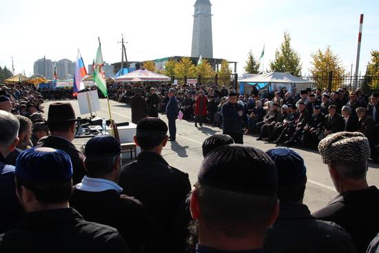 Народный сход в Магасе продолжается уже двенадцатые сутки. Сегодня шло активное обсуждение и согласование делегатов для поездки на переговоры в Пятигорске с представителями администрации президента страны и его полномочным представителем в СКФО. Обсуждение стало всенародным и проходило очень живо. Несмотря на горячее обсуждение, собравшиеся все-таки пришли к единому мнению по кандидатурам. В итоге был сформирован список делегатов в который вошли Ахмед Барахоев, Муса Мальсагов, Бей-Али Евлоев, Малсаг Ужахов, Ахмед Погоров, Висангирей Гагиев, Анжела Матиева и Идрис Абадиев.
