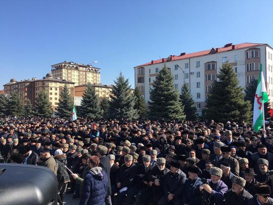 На площади в Магасе собралось уже около 10 тысяч человек. Народ продолжается собираться. Люди обсуждают последние события и выражают крайнее недовольство действиями региональной власти. Митинг начался. Организаторы просят собравшихся соблюдать установленный порядок.