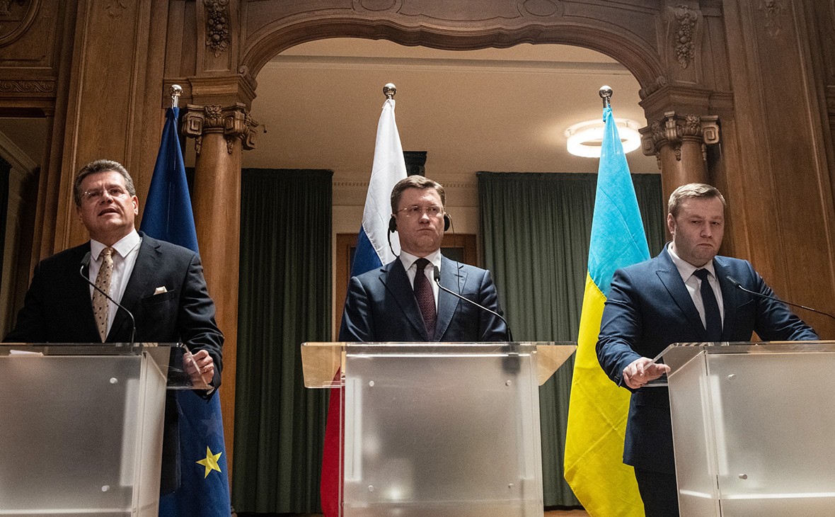 Марош Шефчович, Александр Новак и Алексей Оржель (Фото: Paul Zinken / DPA / ТАСС)