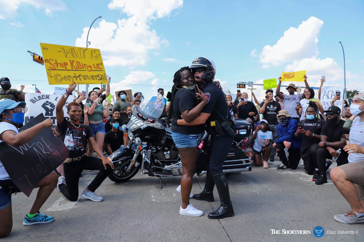В СМИ и соцсетях - огромное кол-во фото и с вставанием на колено, и с хождением людей в форме среди дммонстрантов итд... Я выбрал нейтральное фото, вызывающее, уверен, восторг и радость у одной стороны, и неприянь и презрение - у другой. Обе стороны - представляют американское общество. А у вас подобные "обнимашки"- как вызывают ощущунеие? Это искренность и реальное единение - или лицемерие и бесполость?