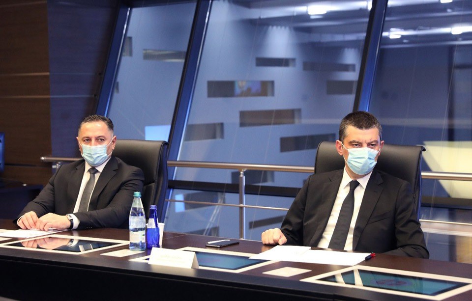 Источник: https://1tv.ge/ru/news/sovbez-gruzii-v-sozdavshejsja-krizisnoj-situacii-mezhdu-azerbajdzhanom-i-armeniej-my-ne-dolzhny-pozvolit-opredelennym-destruktivnym-jelementam-za-predelami-ili-vnutri-gruzii-brosit-ten-na-nashu/ Премьер-министр Георгий Гахария и министр ВД Вахтанг Гомелаури на заседание Совбеза.