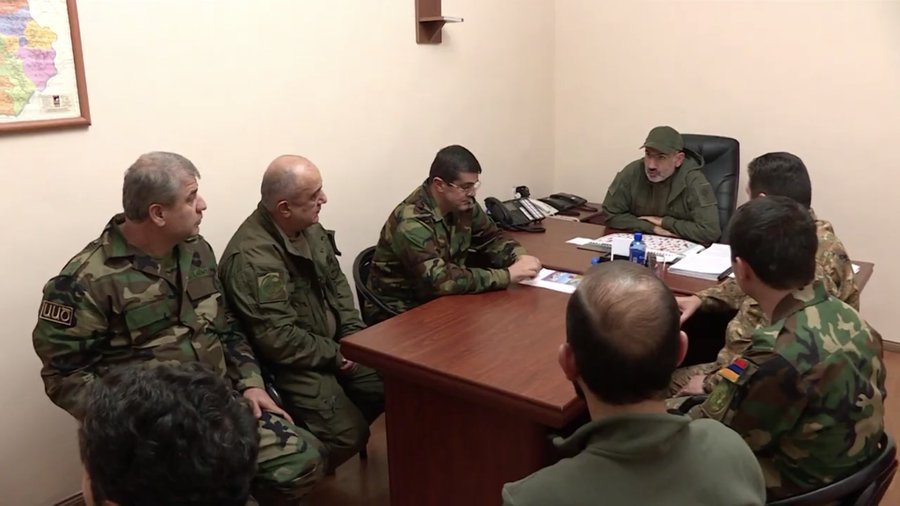 Премьер-министр Армении Никол Пашинян. Справа -  в очках,  лидер непризнанной НКР Араик Арутюнян. Источник: https://pbs.twimg.com/media/EjpR5XkWkAILmoF?format=jpg&