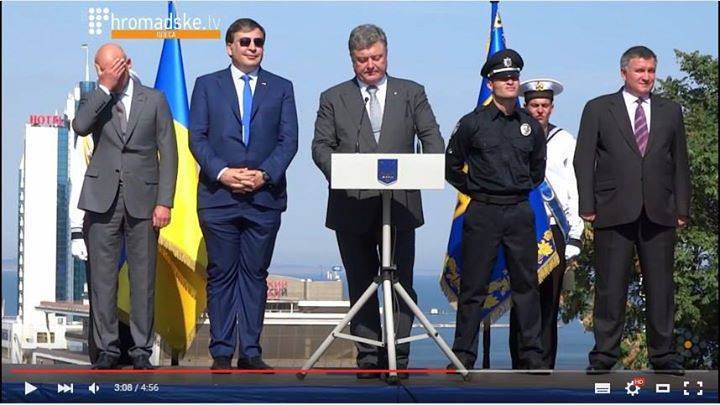 Кстати, он умудрился, прежде чем бегал от украинской полиции по крышам в Киеве, после чего его выпнули с позором из страны, послужить  и у Порошенки, с целью поднимания Одессы с колен:-),  и тогда - он  Миша -  Порошенку очень даже ласкал и называл главным борцом против империи зла.