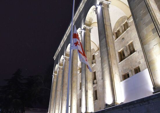 Флаги были приспущены у Президентского дворца, у правительства Грузии, парламента Грузии и других зданий.