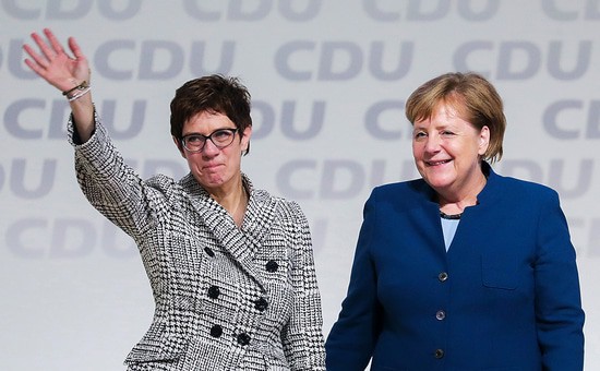 Аннегрет Крамп-Карренбауэр и Ангела Меркель (слева направо) (Фото: Krisztian Bocsi / Bloomberg)  (архив)