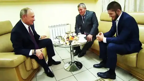 Источник: https://www.youtube.com/watch?v=R98XmqOXAH4 Путин встречается с Хабибом и Адулманалом Нурмагамедовыми. Отец Хабиба, напомню недавно скончался от к-вируса.