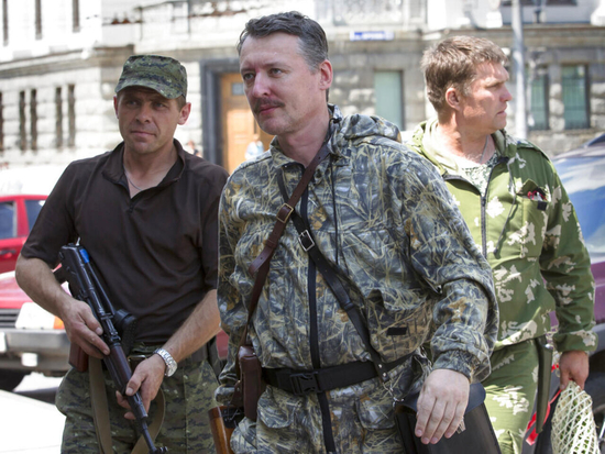 Игорь Гиркин в окружении людей в форме в июле 2014 года AP - Dmitry Lovetsky