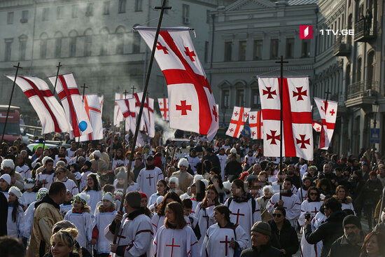 Традиционное рождественское шествие "Алило" в центре Тбилиси. Идея хорошая, красивая, но было бы лучше вместо формы, больше внимания уделить содержанию. По крайней мере, мне так кажется. Вера в Бога - это далеко не шествия и елейные тосты, это характер и поведение.