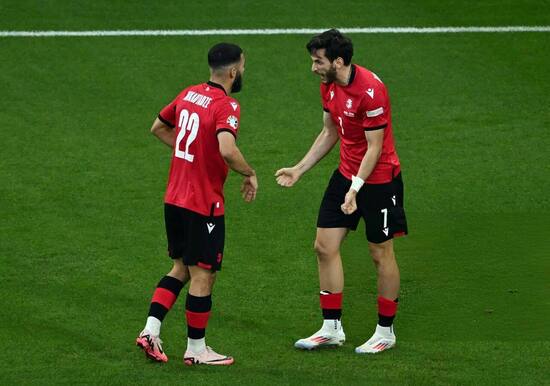 Нападающие сборной Грузии -  Микаутадзе и Кварацхелия