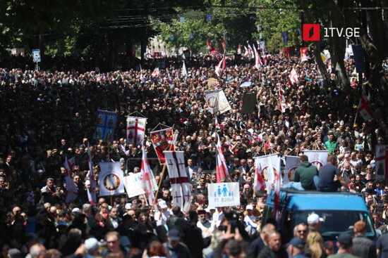 Шествие консерваторов в День святости семьи в Тбилиси 17 мая. Подавляющая часть этих людей, электорат правящей партии или консервативных движений. Архив.