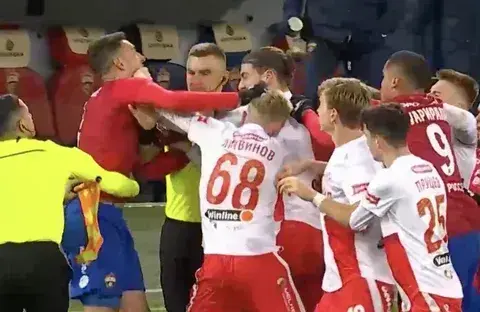 Потасовка примечательна тем, что армеец одним ударом смог зацепить лица двух спартаковцев.