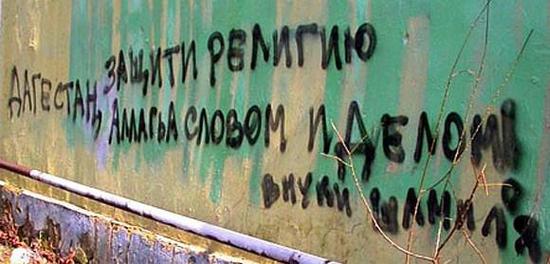 То, что часть молодежи романтизирует боевиков, видя в них кавказских Че Гевар, отрицать невозможно, поэтому неудивительно, что есть надписи, связанные с деятельностью определенных диверсионных групп. Более того, Гереев пишет о том, что на одном из сайтов, контролируемых боевиками, даже появились рекомендации, как писать исламские граффити (зеленым цветом и на русском языке). Опытные юристы говорят, что, если надписи содержат призыв к мобилизации в НВФ, то они могут быть вполне квалифицированы уже не только как хулиганство, но и по более серьезной статье, как тяжкое преступление.
