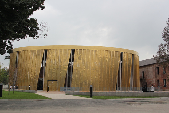 ладно, в общем несколько фото с сегодняшнего дня. спортзал. выглядит неожиданно, накрыт такой металлической конструкцией для консервации зала. вид не окончательный, но что-то уже понять можно.
