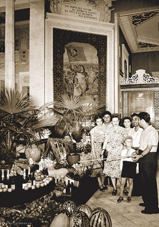 Внутри павильона "Северный Кавказ". Тема продуктового царства обрела новую жизнь. 1954 год.