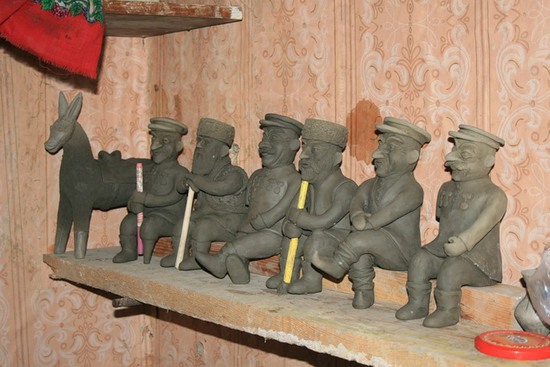 Как их оценивать, этих «влажных мужиков», по каким параметрам – непонятно. Это бесконечно далеко от традиционных балхарских поделок, прекрасных именно своей грубоватостью, нарочитым упрощением форм, отсутствием лишних деталей. Хотя простодушие фигурок подкупает. Сидят, таращатся, а крайний, безрукий удивительно напоминает Иосифа Виссарионовича.