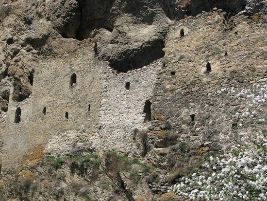 Однако, эта крепость не единственная, на этом же скальном массиве, чуть левее расположены еще несколько подобных укреплений, никак друг с другом не связанных. Во время осады, люди переберались из одного укрепления в другое по проложенным на скальных карнизах мосткам.