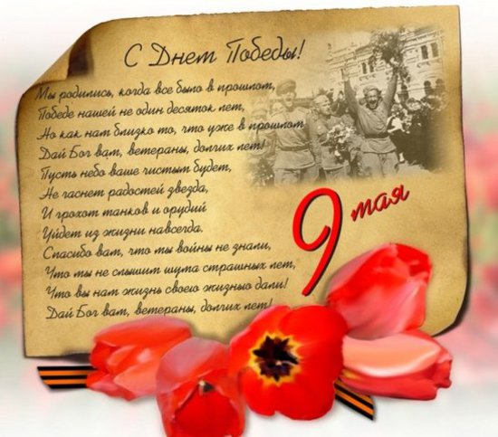 Сердцу каждого из нас дорог Праздник Победы. Дорог памятью о тех, кто ценою своей жизни отстаивал свободу. Мы должны всегда помнить о людях, отдавших свои жизни за свободу и светлое будущее нашей страны. Бессмертен подвиг тех, кто боролся и победил фашизм. Память об их подвиге будет вечно жить в наших сердцах. Мы должны знать, какой ценой было завоевано наше счастье. Знать и помнить о тех почти совсем мальчишках и девчонках, которые смело смотрели смерти в глаза, защищая свою Родину.