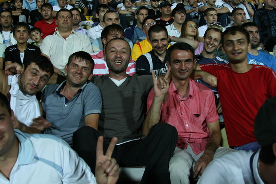 Впервые в Ингушетию с командой гостей приехало столько болельщиков, если, конечно, не считать болельщиков грозненского "Терека", игравшего когда-то вместе с "Ангуштом" во втором дивизионе. Но грозненцы почти на 1000 процентов свои люди, а тут на стадионе появляется загорелый волжский десант не менее 35 человек. Ингуши говорят "Гость от Бога", и никто еще не отменял кавказского гостеприимства. Фанов "Ротора" разместили в гостевом секторе, подарили каждому программку матча и обеспечили охраной.