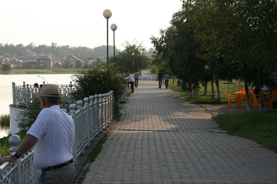 Но когда мы уже выходили из назранского стадиона, на выходе я видела двух девушек моего примерно возраста, ярко накрашенных, в нарядных платьях по колено и - понятное дело – подчеркивающих все прелести молодой фигуры. Нет, я не думаю, что в Ингушетии живут только "правильные" девушки. Я видела очень мало женщин, и, кажется, все они были в косынках, но за непокрытую голову, думаю, никто штрафовать не будет. Другое дело – мнение родных, соседей, друзей и т.д. Но размышлять тут о тонкостях кавказского менталитета не буду - опыта маловато. Скажу только, что в Ингушетии я почему-то чувствовала себя очень голой. Прямо бесстыдно как-то голой. Это такое странное ощущение – как будто в церковь в джинсах, майке и без платка заходишь. Вроде как и понимаешь, что это не главное, но все равно - неловко.