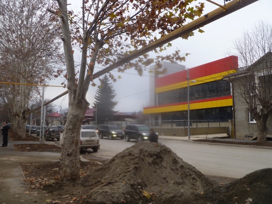 В обед кавалькада черных "лексусов" причалила к кинотеатру Чермен. Несчастный,  некогда самый популярный в Южной Осетии кинотеатр ремонтировали раз пять. Перекрашивали и перестраивали. Но в свою полную мощность и по своему прямому предназначению, он так и не «зафункционировал». Я остановил «Ниву»  в квартале от Кинотеатра и выдвинулся навстречу к черным "лексусам". Группа в черных костюмах, ко времени моего приближения, вышла из Чермена пошли смотреть  ближайший недостроенный дом. На улице остались два молодых человека. "Да - не густо тут охраны, если внутри Сурков!" - подумал я.