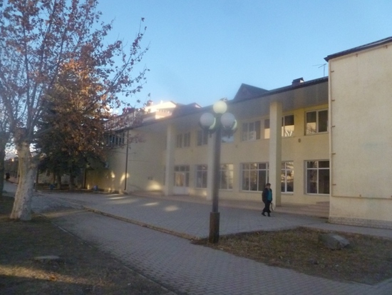 Радует огнями и вывеской наш Дворец Пионеров а ныне Дворец Детского Творчества. Вывески и на русском и на осетинском.