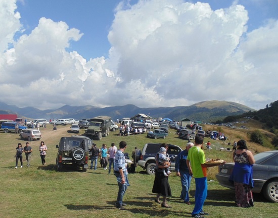 Поднявшись в Джер, на самом деле, взору представилась совсем инная картина. Да как и ожидал, многие десятки авто, сотни людей. Но назвать столпотворением, это было нельзя. Всё напоминало что то, вроде фестиваля, когда множество людей приезжают в определенную местность, зная для чего, и зная как надо действовать куда идти, как себя вести. Здорово!